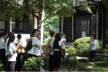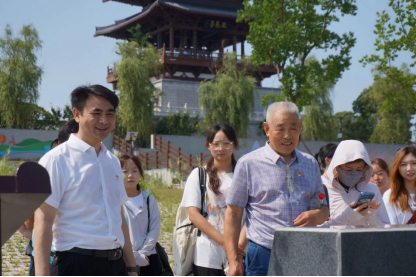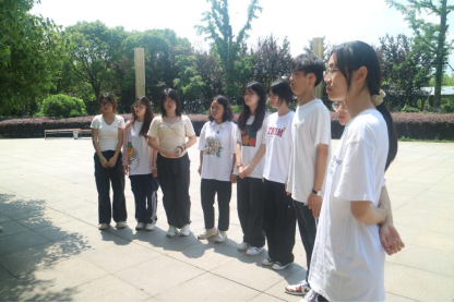 师生在长江国家文化公园九江城区段琵琶亭合影
