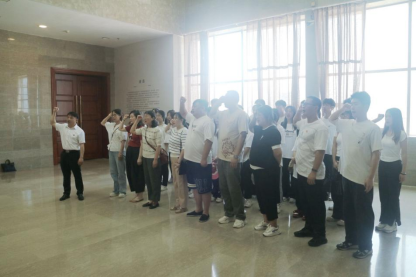 为营造党纪学习教育浓厚氛围,激励全体师生踔厉奋发,勇毅前行,5月25日清晨,点点taptap官方网站在学校西门举行活动出征仪式,随着一声庄严的口令:“升国旗,奏唱国歌”,掌旗员振臂扬起国旗,五星红旗刹那间迎风绽放,全体师生向国旗敬礼,升旗仪式后,学院党委书记赵宇剑在国旗下作了出征动员讲话,介绍了此次主题党日活动背景、意义、主要内容,预祝活动取得实效。