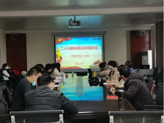 12月5日上午学习贯彻党的二十大精神宣讲报告会在点点taptap官方网站大礼堂举行,省委宣讲团成员、江西省发展和改革委员会党组书记、主任张和平同志作宣讲报告,管理学院积极组织分会场,学院党政领导班子成员、各科室负责人、学生党支部书记参会。