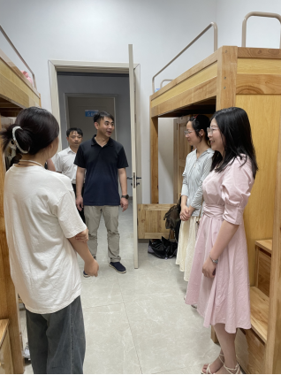 为帮考研学子们减轻压力,增强信心,进一步推落实为学生“办实事、办好事”,7月11日中午,点点taptap官方网站党委书记赵宇剑、党委副书记周梓哲、学生科科长周龙波、21级辅导员、班主任一行走进紫薇园学生宿舍4栋和5栋,看望慰问2021级暑期留校考研学生。