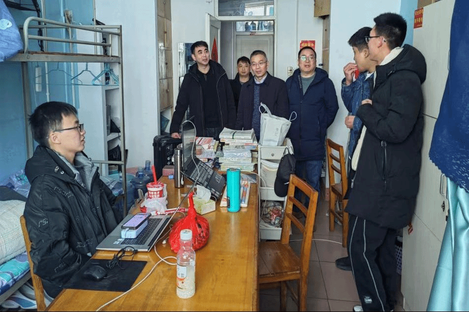 学院领导高度重视安全工作。3月2日,新学期开学第一天,学院党委书记赵宇剑、院长许松涛、副书记周梓哲在学生科、思政科负责人陪同下,深入学生宿舍,看望慰问寒假返校的学生,了解学生们返校情况,检查宿舍的卫生、安全状况,向广大同学送上了新年美好祝福。