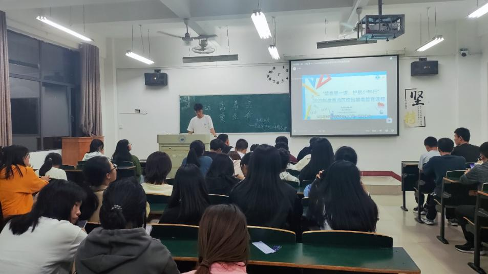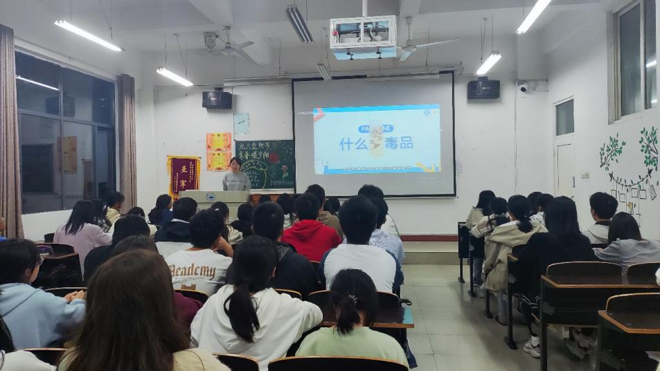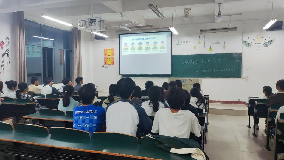 活动中,主讲人通过视频、图片等多种形式向同学们介绍了毒品的常见种类、特征以及辨别方法,帮助大家更好地识毒辨毒。主讲人告诫同学们要自觉提高对毒品危害的认识,构筑抵御毒品的心理防线,树立健康人生的生活理念。