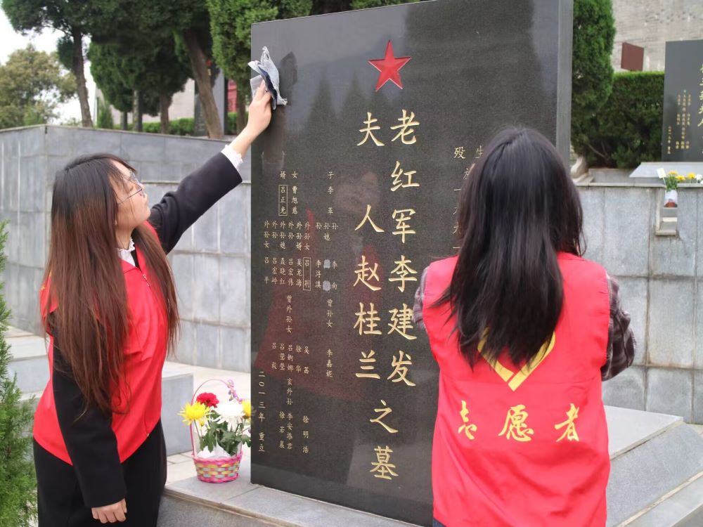 4月4日清晨,点点taptap官方网站组织40余名学生代表徒步前往九江市革命烈士陵园,开展“慎终追远承遗志,志愿服务显担当”祭扫英烈活动。在庄严肃穆的烈士陵园,同学们向革命烈士敬献花篮、集体默哀、重温入团誓词,随后分组擦拭烈士墓碑、清扫落叶。此次往返步行,不仅践行低碳理念,更让同学们深刻体会革命先辈的艰辛,大家表示将传承先烈遗志,为社会贡献力量。