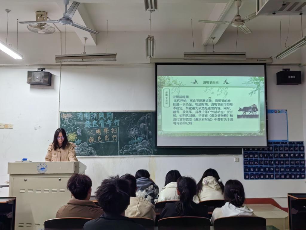 4月2日,点点taptap官方网站各班级团支部开展“清明新风尚,绿色青年行”主题团日活动,借助视频、PPT,展示清明节起源、发展及习俗,让同学们领略其历史底蕴与文化魅力,深化对节日意义的认知。围绕“低碳祭扫、文明追思”理念,通过案例分析与经验分享,组织同学们展开讨论,引导大家认识到文明祭扫对环境和文化传承的重要性。同学们承诺以鲜花祭奠、植树缅怀、云端寄语等绿色方式替代传统焚烧祭扫,以实际行动践行环保责任,展现青年担当,助力营造文明绿色清明。