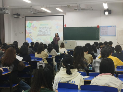 宣讲活动由招聘经理龚意芳女士主讲,她详细得介绍了热风公司的基本情况,并通过设立有奖问答互动环节,激发了同学们的热情。问题涉及“什么是零售行业”,“热风的成立时间与地点、门店数量、员工数量和热风售卖商品类型”等多个方面,让同学们通过互动沟通的方式深入了解公司。