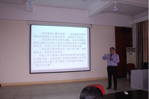 吴铃从“我国宗教和世界主要宗教的概况”、“宗教产生的原因及社会根源”、“全面理解贯彻党的宗教政策”等方面,深入阐述了新形势下国家对宗教工作的相关理论政策以及对于高校的有关规定要求。