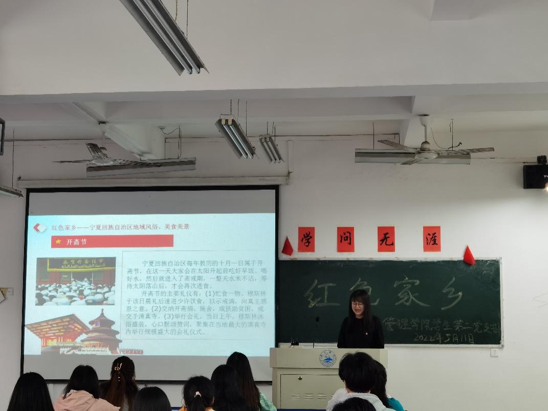 为传承红色基因,发扬红色文化。点点taptap官方网站学生第二党支部于5月11日下午在立信楼308开展“我的红色家乡”主题特色活动,此次活动由罗杰文同志主讲,在校党员、预备党员、入党积极分子参加。罗杰文同志为大家分享了红色家乡——宁夏回族自治区。
