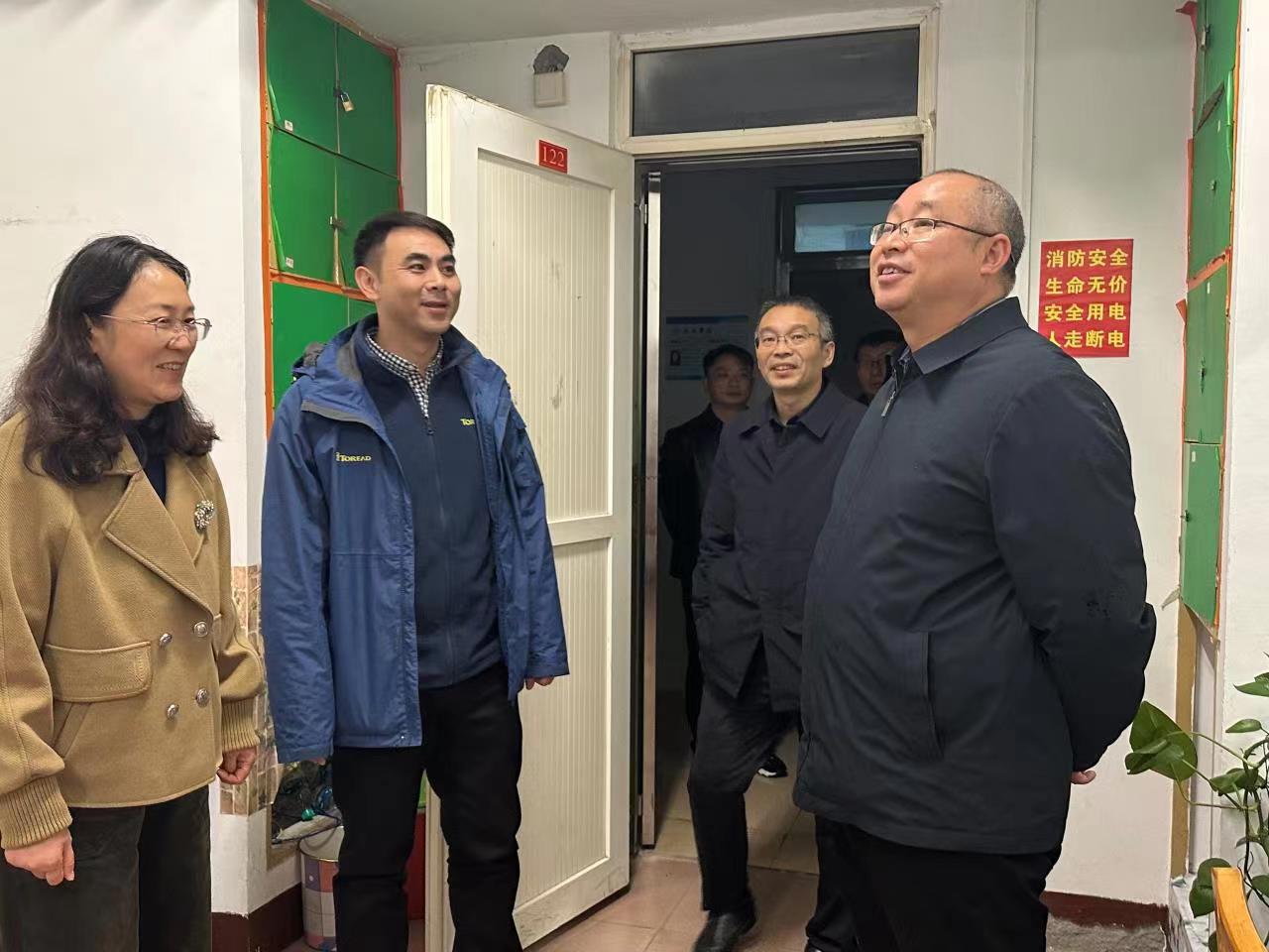 调研会后,陈小林在学院党政班子成员陪同下,来到学生宿舍27栋,看望全体辅导员、检查指导学生工作。学院学生人数多,防控工作任务重、压力大,陈小林鼓励大家要树立信心、克服困难、压实责任,按照学校要求,持续做好疫情防控工作和学生日常管理工作,要深入班级、深入寝室,走进学生、关爱学生,切实维护学生身心健康,保障校园安全稳定,同时,他还叮嘱辅导员自身也要注意防护、保重身体、乐观生活。