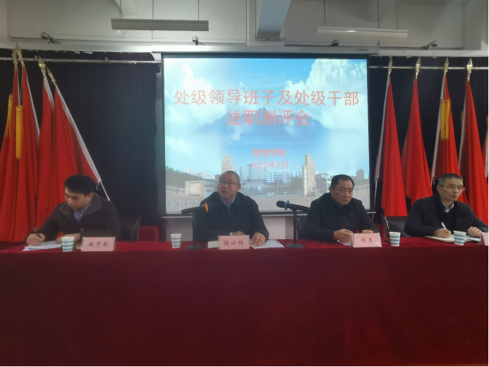 在处级干部述职测评会召开前,学院召开了科级干部述职测评大会,7名科级干部在会上对个人2022年度工作进行了述职。