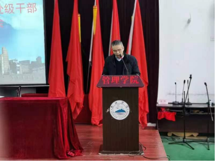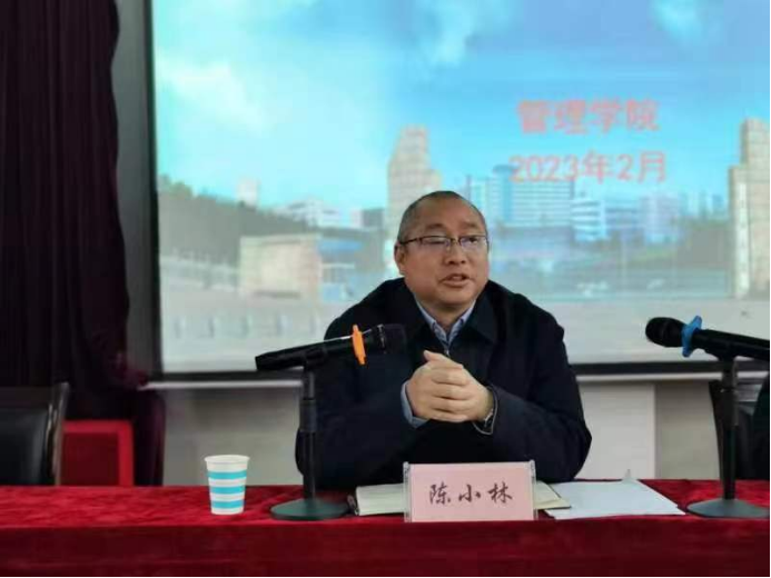 2月17日上午,我院在文理实验楼召开处科级干部述职测评大会,校长陈小林出席会议并讲话。学院全体教职工参加了会议,会议由学校党政办公室主任杨杰主持。