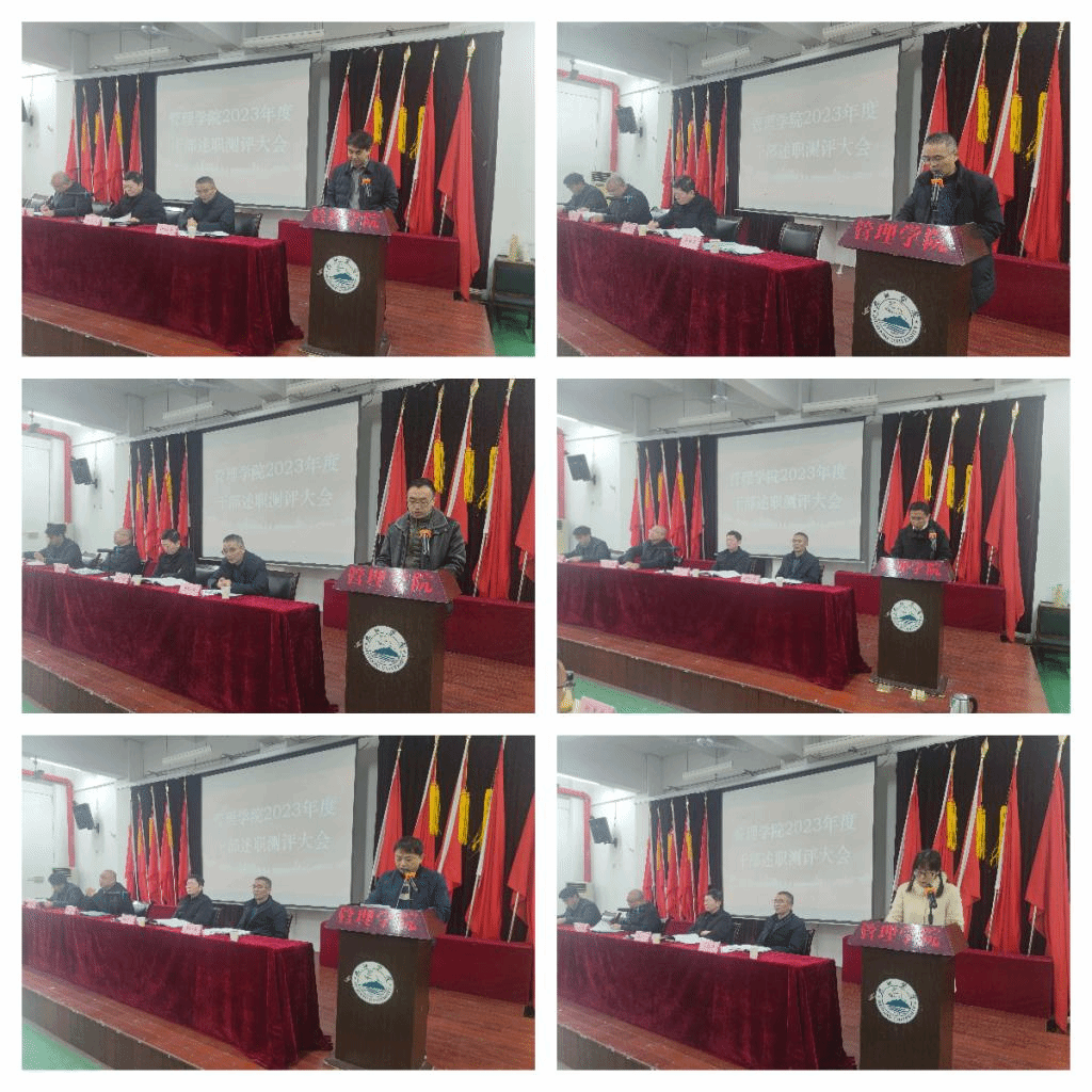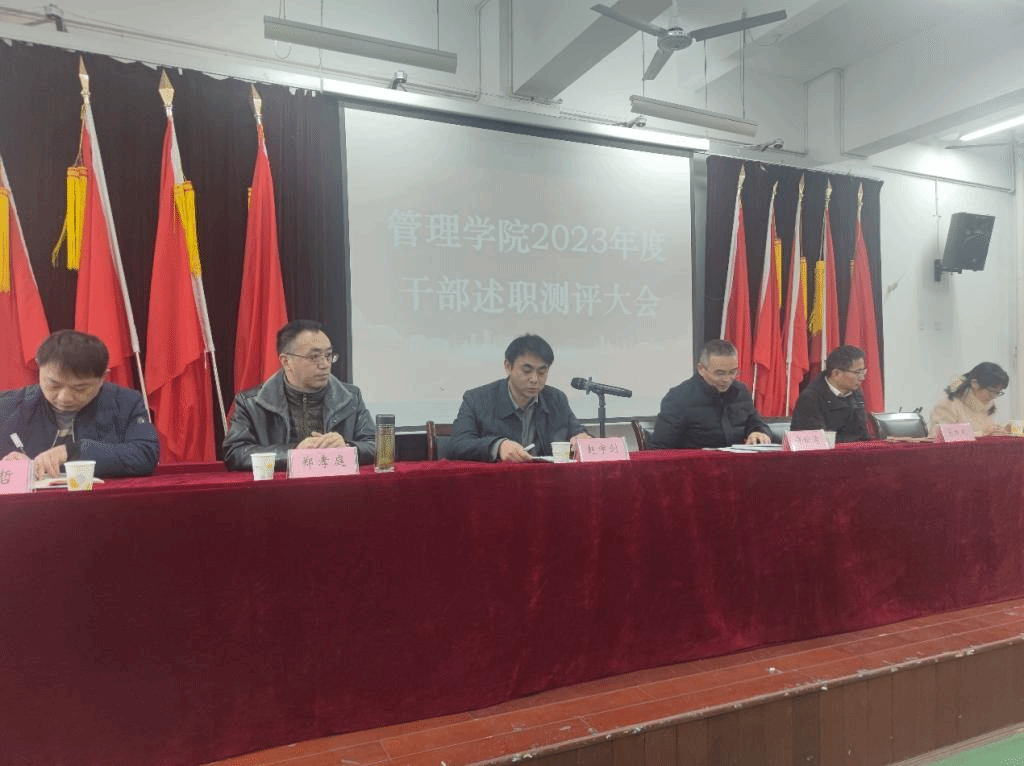 在处级干部述职测评会召开前,学院召开了科级干部述职测评大会,7名科级干部在会上对个人2023年度工作进行了述职。