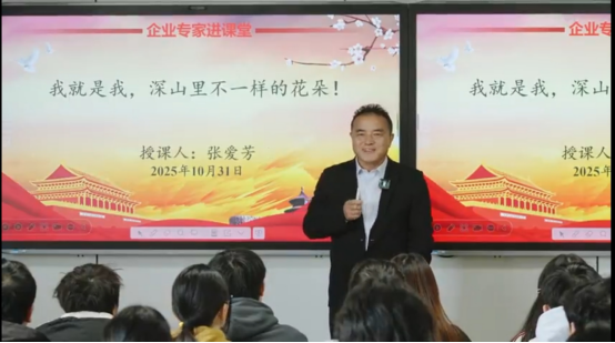 课程以“我就是我,深山里不一样的花朵!”为主题,企业专家结合自身丰富的创业经历,用真实故事与实践案例搭建起理论与现实的桥梁。课堂上,他围绕“源于乡野、深耕乡土、服务乡邻、振兴乡村、与君共勉”五大核心内容展开分享。从“源于乡野”的初心萌芽,到“深耕乡土”的创业坚守;从“服务乡邻”的责任担当,到助力“振兴乡村”的实践探索,最后以“与君共勉”寄望青年学子。层层递进地展现了新时代农业工作者扎根基层、助力乡村振兴的奋斗图景。