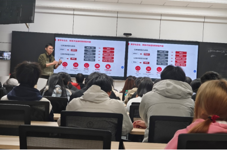 随后的主题讲座座无虚席、气氛热烈。唐总从科技升级与商业转型双重视角,剖析数字经济背景下财务领域的数智化变革,详细讲解财务转型的“专业财务→业财融合→价值整合”三阶段演进路径。互动环节中,学生踊跃提问,唐总建议同学们既要夯实财务基础,也要主动掌握数据分析工具,着力培养业务理解能力与数据思维。