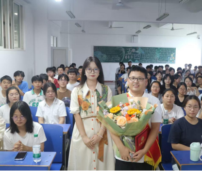 在表彰环节,学院对2024-2025年度获评学校优秀教师、优秀教育工作者等荣誉的10名教职工进行了隆重表彰。受表彰者上台时,现场掌声雷动,学院团委、学生会主席团学生代表献花祝贺,传递了深厚的师生情谊。此外,会议还举行了“五老”宣讲团特聘宣讲员聘任仪式,学院领导依次为杨贞斌、蔡报纯、郑孝庭、陈维良等四位老师颁发了证书并献花,期待他们为青少年思想道德建设贡献力量。