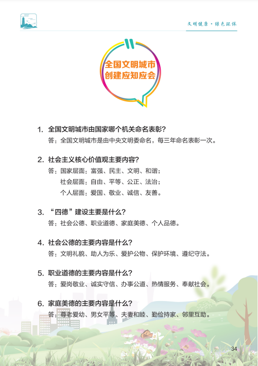 移风易俗,争当文明创建的引领者。弘扬时代新风,践行公民道德,热心公益,邻里互助;维护市容,保护环境。崇尚社会公德,善做好人好事;崇尚职业道德,争相爱岗敬业;崇尚家庭美德、注重家风家教;崇尚个人品德,提升自身修养。爱国守法,诚实守信。