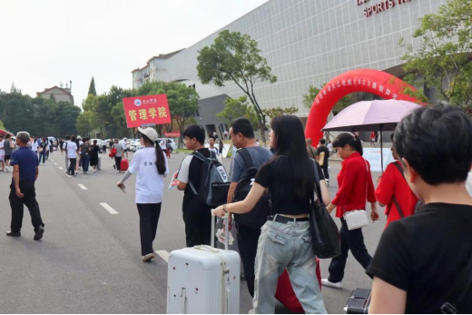 烈日高照,参与迎新工作的师生和“学长学姐”们的工作热情却没有减弱,每天从早7:30至晚20:00一直坚守在岗位上,大家以热情、严谨的工作态度为新生们提供全方位、全天候、全过程的服务。从会场签到、新生引领、行李搬运到摄影采访等一项项工作都有条不紊地进行,让每位初来乍到的萌新都感受到来自管院人的温暖与亲切。