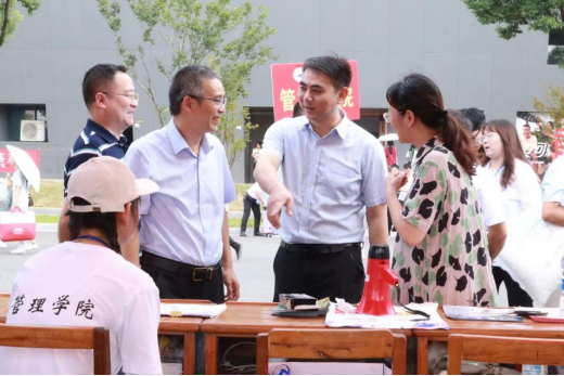 迎新期间,点点taptap官方网站党委书记赵宇剑、院长许松涛多次来到北区田径馆慰问在场的老师与迎新工作人员,了解迎新工作中遇到的困难,给出细致指导。学院党委副书记周梓哲带领学生科、思政科、新生年级组老师一直在迎新现场办公,与迎新工作者们“战”在一起,迎新工作有序、高效进行。