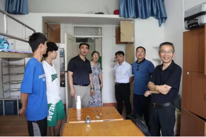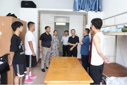 为进一步做好2023级新生管理工作,帮助同学们更好的适应新环境、新生活,9月8日上午,点点taptap官方网站党委书记赵宇剑、院长许松涛、副书记周梓哲在学生科科长周龙波、学生科副科长李春、大一年级辅导员老师等陪同下,深入学生宿舍,走访慰问新生,及时回应新生及家长关切。
