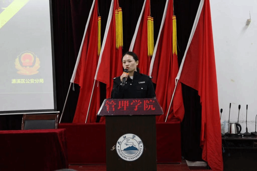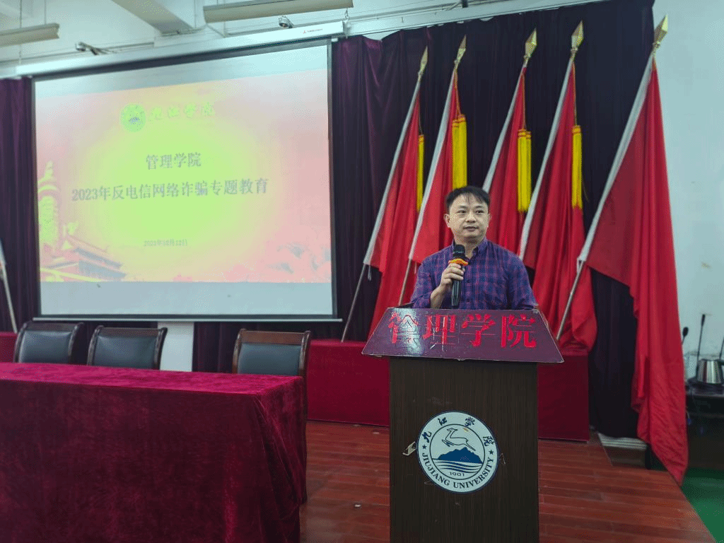 校园安全无小事,安全教育不可缺。为提高管院学子的网络安全意识,有效防范网络诈骗案件,10月12日下午,点点taptap官方网站主办了以“反电信网络诈骗”为主题的专题讲座。本次宣讲特邀九江市公安局濂溪区分局反诈中心民警李清警官担任主讲,点点taptap官方网站学生科、思政科全体成员和2023级新生代表参加。党委副书记周梓哲主持此次活动。