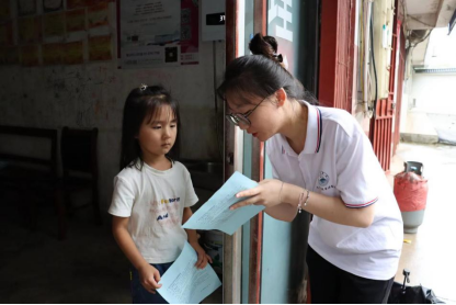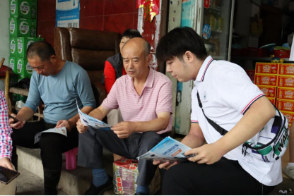 “奶奶,夏天天气热,食物很容易变质,您发现饭菜变酸了的话,千万不要再吃了。”在乡贤馆,实践队员王艺琳与村民亲切交谈,实时互动,以“一对一”宣讲的方式拉进实践队员与村民的距离;在街头巷尾,实践队员杜治历用一口地道的九江方言搭建起实践队员与村民沟通的桥梁。实践队共服务村民33人,发放食品安全宣传单、防诈骗海报80余张。