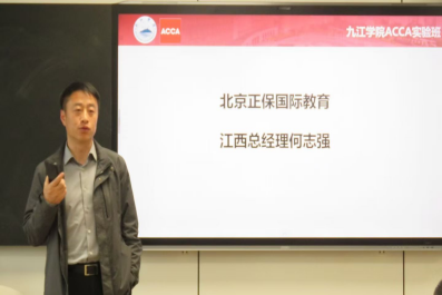 北京正保国际教育江西总经理何志强在致辞中详细阐述了ACCA实验班的培养理念,提出“成绩、竞赛、实习、证书”四位一体的成长路径,并寄语学生以积极态度迎接挑战,把握国际化财经人才的培养机遇。