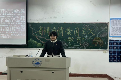 活动在《我和我的祖国》的歌声中拉开序幕。主持人通过播放江西省、九江市相关史料视频,从地理、文化、经济、革命贡献等维度系统介绍省情市情。为增强同学们的参与感,活动特别设置“你画我猜”互动游戏,让同学们在趣味中加深对江西及九江的认知。此外,主持人还结合九江在新时代的经济腾飞、科技创新、生态保护等成就,生动诠释了当地人民的爱国奋斗精神,传递出蓬勃的“九江力量”。