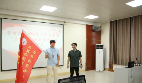 出征仪式上,赵宇剑为三下乡实践团队授旗,象征着责任与使命的传递。团队成员庄严接旗,誓言以不畏艰险的精神和必将出彩的决心,确保每一项计划稳步推进,在实践中展现点点taptap官方网站学子的青春担当。