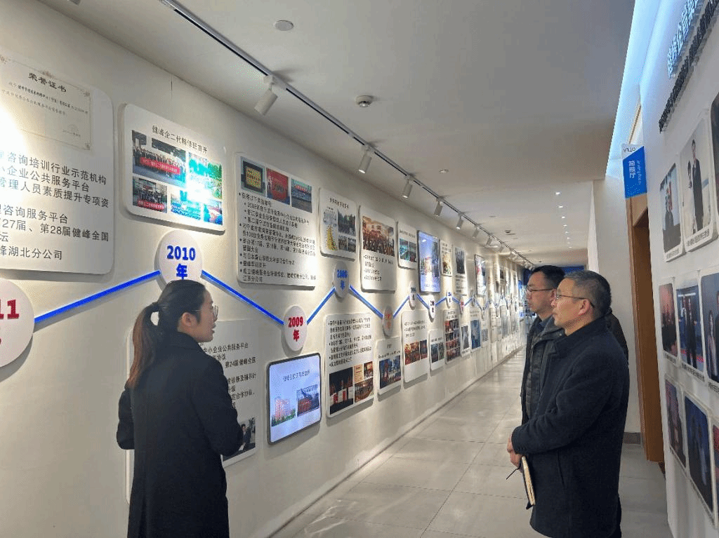 许松涛一行参观健峰历史长廊。三十余年来,健峰企管集团为我国制造业企业持续贡献国际管理思维、科学管理工具和先进制造知识,健峰企管集团三十年企业发展史,既是伴随我国制造业从中低端逐步迈向价值链中高端的成长史,也是台湾企业与内地企业价值共生、协同发展的良性交互史,许松涛对健峰企管集团三十年高质量发展历程及其贡献表示了高度赞许和充分肯定。