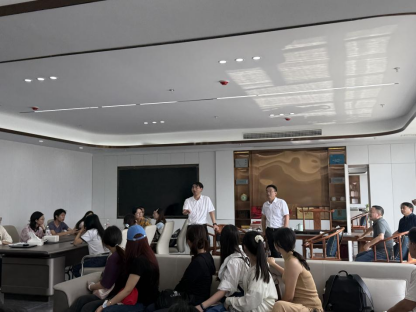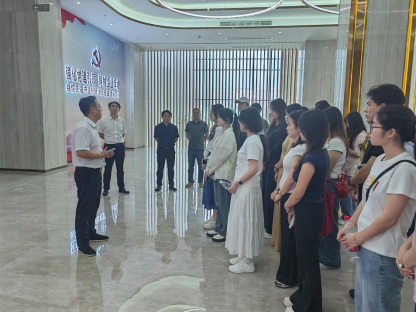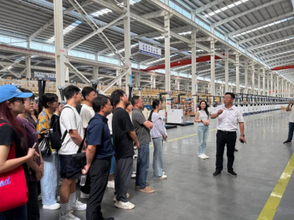卢海林向师生一行人介绍了公司的发展历程、业务领域与发展成果,带领师生参观了生产线,车间里一台台大型生产机械组成了一条条流水线,智能搬运设备代替人工将生产出来的产品运往物流区,工厂中壮观的景象让在场许多学生感到震撼。在参观完工厂后,卢海林还带师生一行人参观了公司的办公环境与员工宿舍,体验了员工食堂。