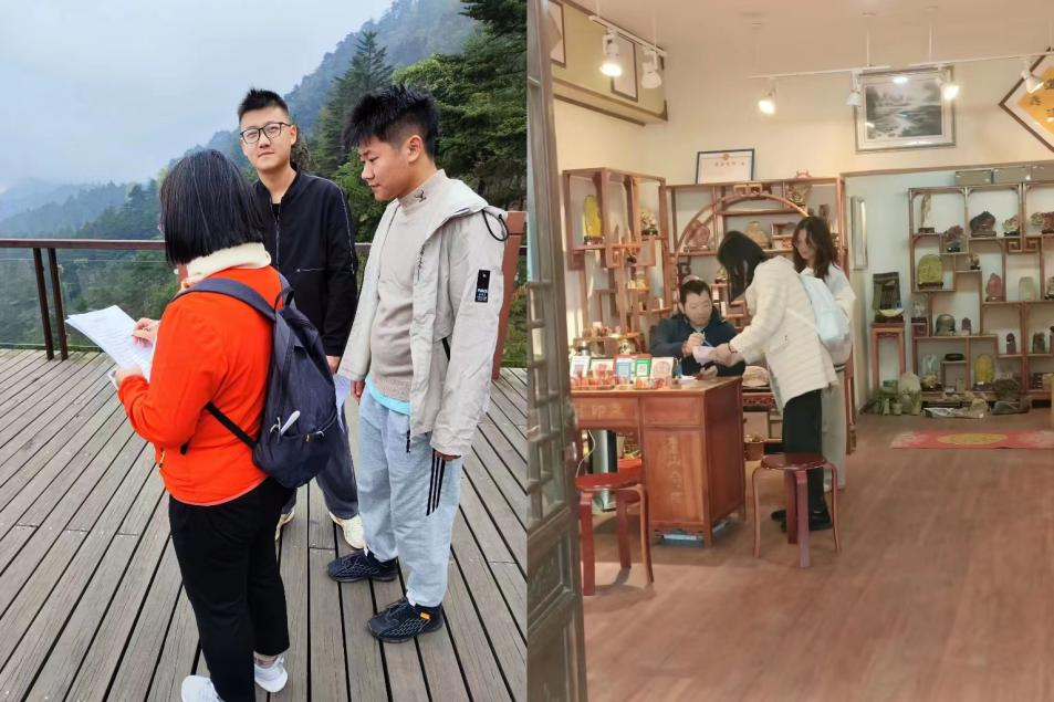 “姐姐您好,我们是点点taptap官方网站的学生,在庐山做实训调研,可以请您帮我们填一下调查问卷吗?”点点taptap官方网站学子的身影穿插于各个景点之中,庐山云雾茶市场调研、庐山景区环境调研、庐山民宿市场调研……一份份问卷代表着管院学子的智慧结晶与真实思考,在实地调研中熠熠生辉。
