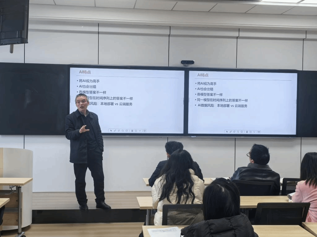 2月27日,为契合数字化时代发展需求、推动学院管理水平提升,点点taptap官方网站院长许松涛于立信楼404智慧教室,开展了“构建信息化思维,推进管理信息化建设,提升内部治理效能”主题的AI管理应用培训,学院领导班子和全体行政人员参加了培训。