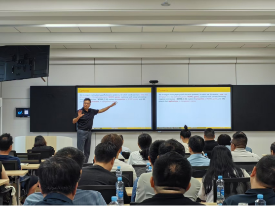 讲座中,冷明明教授介绍了合作博弈理论存在多参与者分配问题,强调了合作博弈理论在解决实际管理问题中的重要性,尤其在资源分配和决定制定方面。他详细讲解了ADMC的概念和核心理论,即N个参与者的合作博弈中,参与者的边际贡献随着合作规模增长而递减。他还分享了三个实际应用案例:代码共享博弈、团购博弈和调度利润博弈,这些案例生动地说明了理论如何在现实世界中发挥作用,帮助企业和组织解决复杂的资源分配和管理问题。