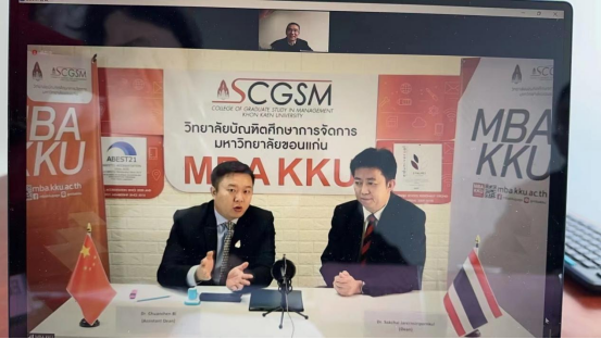签约仪式以视频连线方式举行。孔敬大学研究生点点taptap官方网站院长Dr. Sakchai Jarernsiripornkul、院长助理Dr. Chuanchen BI、孔敬大学项目负责人饶桂香、点点taptap官方网站院长许松涛、副院长郑孝庭参加活动。