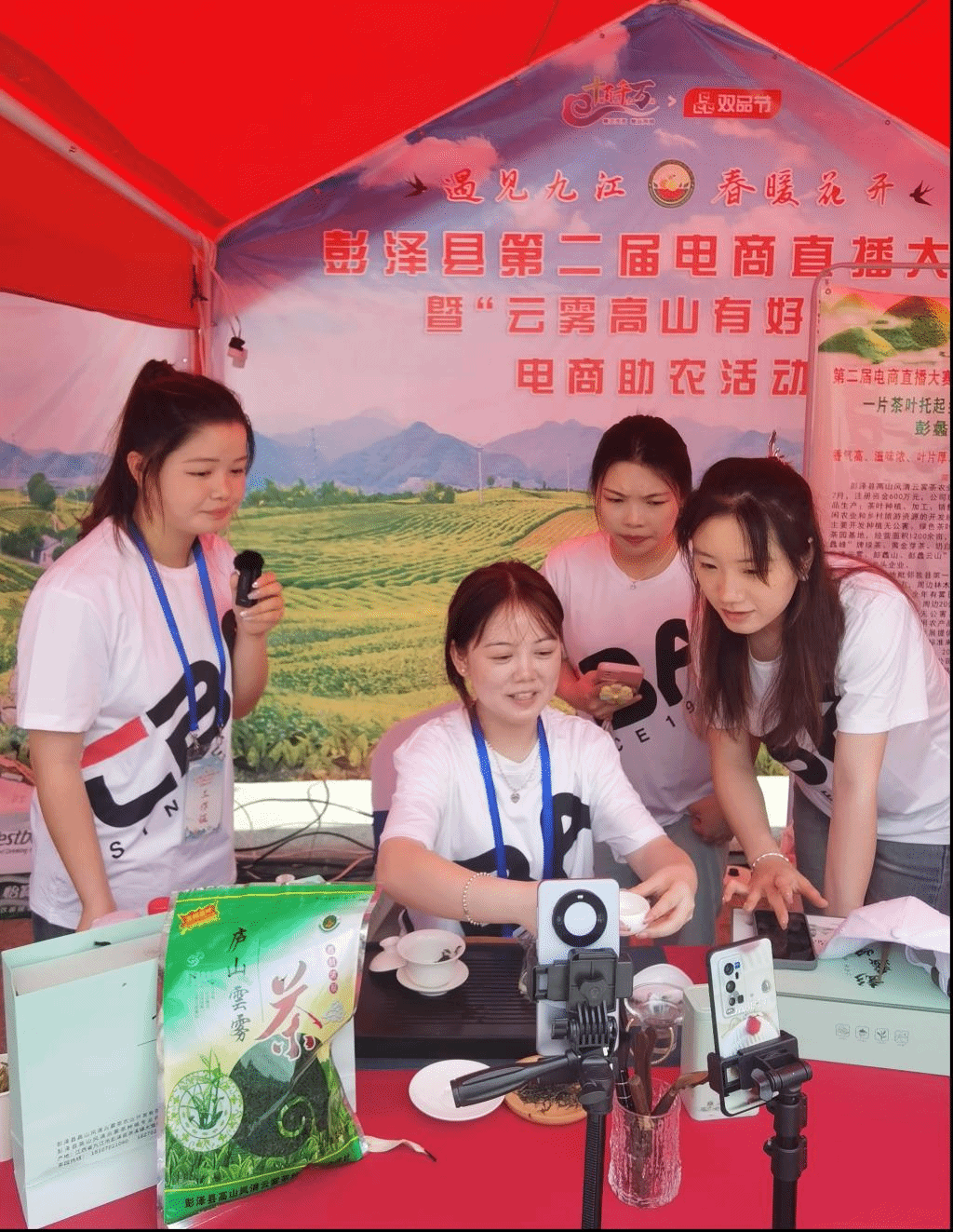 根据技能和兴趣点,教学团队已组建了12支学生志愿服务队,于2023年9月正式参与到了签约帮扶企业的实际运营和日常管理中。先后对国家级一村一品的瓜蒌籽进行卖点挖掘,对国家级生态农场的高山茶进行文化挖掘,对传统千层底老布鞋进行工艺推广。截止目前,共完成了180余条原创短视频的拍摄、剪辑和发布,通过“九院助农团”、“彭蠡茶记”、“布鞋记忆坊”等多个抖音直播账号共完成了50多场直播带货。
