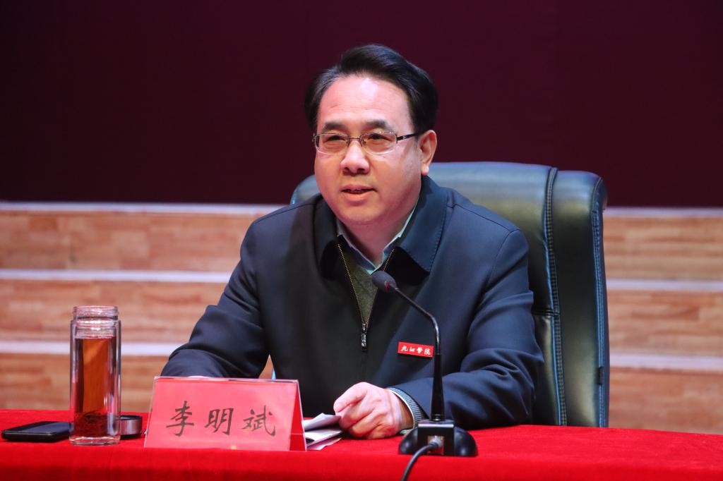 李明斌指出,本轮审核评估是对学校近六年办学水平、教育教学改革、人才培养质量的全面“体检”,对促进教育教学管理提升、扩大社会影响具有重要意义。为高标准、严要求、高质量做好审核评估迎评工作,李明斌提出三点要求:一是认识再深化,凝聚全员参与的思想共识。全校师生要以审核评估为契机,强化质量意识,巩固本科教学中心地位,推动教育教学改革,提高人才培养质量。二是对标再精准,坚持精益求精的良好作风。各单位要对照评估要求查漏补缺,精细整理教学资料,运用现代信息技术助力线上评估,全力保障评估工作顺利进行。三是责任再压实,构建协同高效的工作机制。各部门、学院要加强统筹协调,确保教学秩序稳定,凝聚合力,高质量完成审核评估各项工作。