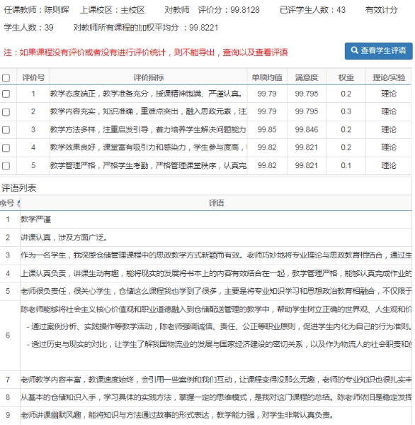 图1 学生对《仓储与配送管理》课程的“学评教”